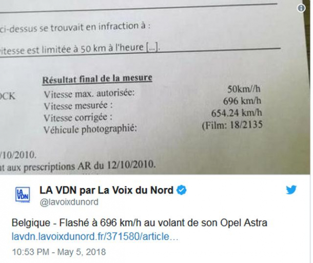 Evident, o asemenea viteză este imposibil de atins cu mașina. Șoferul a mers la poliție pentru a demonstra că mașina sa Opel Astra mai mult de 180 de kilometri pe oră nu poate atinge. Mai mult, spune el, nu este un vitezonam, și a circulat cu cira 60 de kilometri la oră în ziua respectivă.