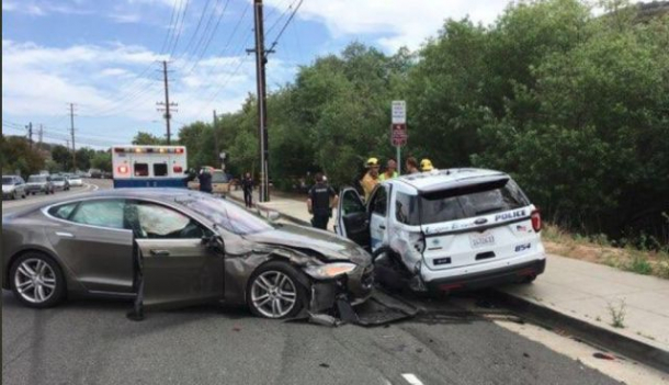 Șoferul unui sedan Tesla, pe care l-a fixat pe pilot automat, a intrat cu mașina într-un automobil de poliție staționat în Laguna Beach, California.