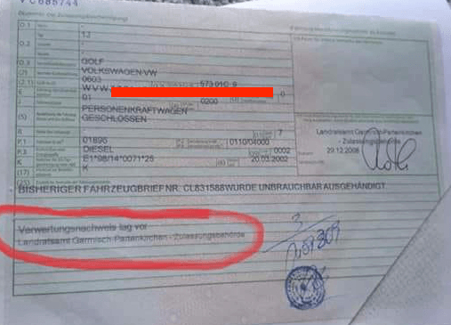 Cumpărătorii trebuie să fie foarte atenți ca brief-ul mare (cartea mașinii) să nu fie ștampilat cu termenul Ungultig (invalid). De asemenea colțul tătiat la brief-ul mare înseamnă că mașina a fost scoasă din circulație definitiv în Germania, deci automat trebuie să facă dovada că au transportat-o pe platformă sau să prezinte talonul provizoriu și numerele aferente.