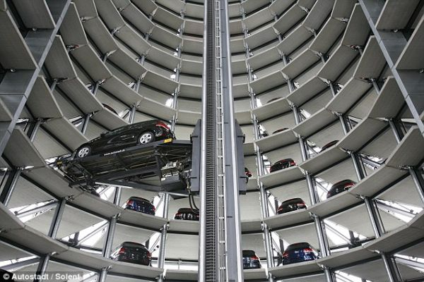 Cel mai spectaculos showroom din lume: 600 de mașini Volkswagen, expuse în turnuri înalte de 60 de metri! (FOTO)