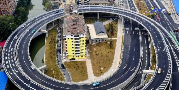 Autoritățile chineze au construit un nod de autostradă în jurul unui bloc de locuințe, în sudul Chinei, pentru că justiția a împiedicat exproprierea și demolarea clădirii.