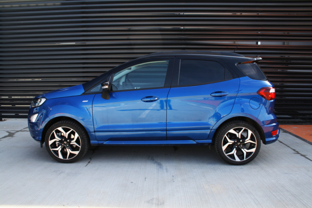 Noul EcoSport utilizează platforma predecesorului său, însă inginerii din Craiova spun că noutatea constă în cele 2.300 de piese noi şi 6.500 de setări modificate.Deşi e bazat pe platforma tehnică a lui Ford Fiesta, EcoSport abordează linii mai convenţionale, caracterul de SUV fiind accentuat de garda la sol mai ridicată, forma caroseriei şi spaţiul generos de la interior. Acesta mai bifează şi la capitolul atitudine – e foarte vesel, foloseşte combinaţii de culori puternice mai ales la exterior, şi e adresat în mod clar celor care vor să atragă atenţia asupra lor – altfel nu poţi explica cele două nuanţe folosite pentru caroserie.
