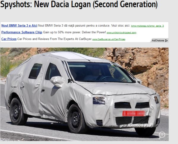 Pozele au apărut pe site-ul francez autoevolution.com şi au fost făcute în timpul unor teste făcute în Italia. Noul Logan este camuflat dar din fotografii se poate vedea clar că este mai lung decât precedentul model apărut în 2004.