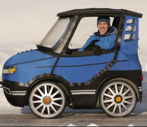 Un designer suedez s-a gândit să își transforme bicicleta în automobil pentru a putea circula și iarna cu ea.