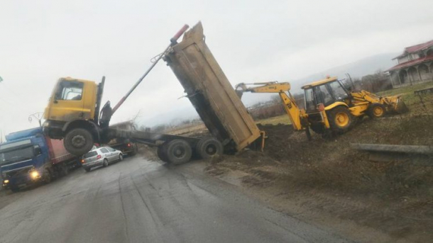 Din fericire, basculanta și-a revenit, iar traficul s-a reluat fără ca cineva să fi fost rănit.