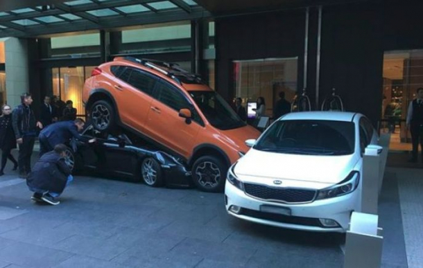 Imaginea zilei: Parcarea reușită de un valet din Sydney. A distrus un Porsche și a lovit alte două mașini