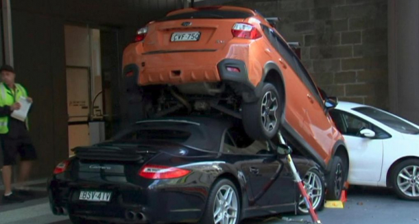 Un bărbat care lucrează la un hotel din Sydney a fost însărcinat să parcheze un Porsche Carrera pentru un oaspete, însă a reușit să intre cu mașina sub SUV-ul staționat în față și să-l izbească într-o altă mașină.