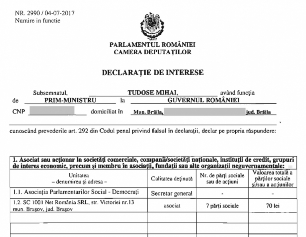 Printre cei care i-au sfătuit pe români să aibă încredere în TVA-ul defalcat se numără și premierul Mihai Tudose. El însuși, totuși, a avut grijă să nu-și înscrie compania la care are acțiuni, 1001 Net România SRL, în acest sistem, informează cursdeguvernare.ro, care a consultat aplicația ANAF.