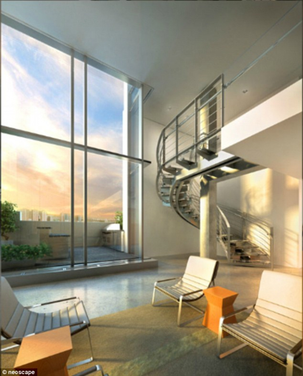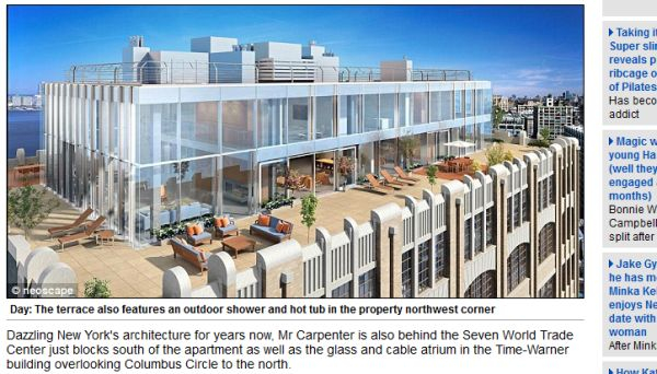 Cu o suprafață de 740 de metri pătrați, penthouseul care se întinde pe două etaje oferă un peisaj spectaculos asupra Manhattan-ului și a râului Hudson, zidurile sale exterioare fiind confecționate din sticlă.