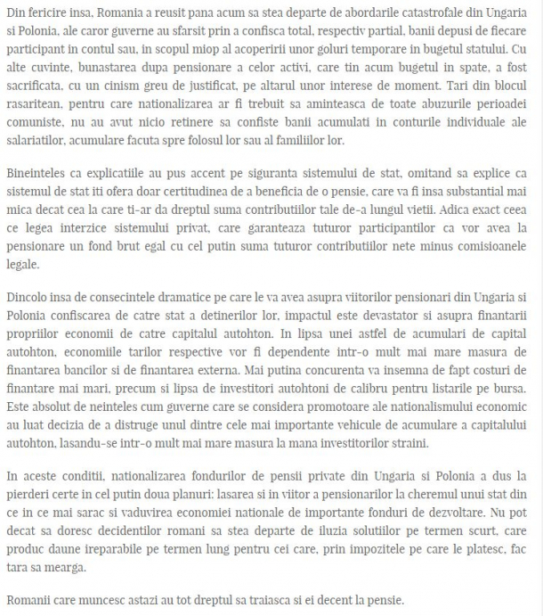 În 31 martie, Radu Crăciun publica un articol pe blogul personal, intitulat "Pensia noastră- de la rușinea de a o primi la rușinea de a o pierde", în care critica vehement conceptul de naționalizare a fondului de pensii private.