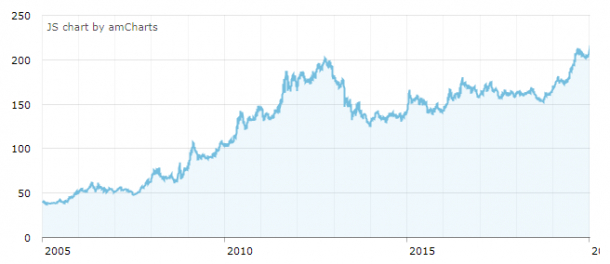 Foto: Evoluția cursului aurului din 2005 până în prezent – graficul BNR nu merge mai în urmă de anul 2005 (sursă foto: BNR)