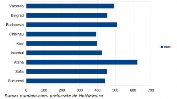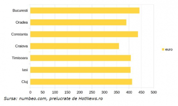 Comparativ cu alte orașe din țara noastră, Bucureștiul este cel mai scump. În Constanța traiul costă 436 euro, iar în Cluj de 412 euro.