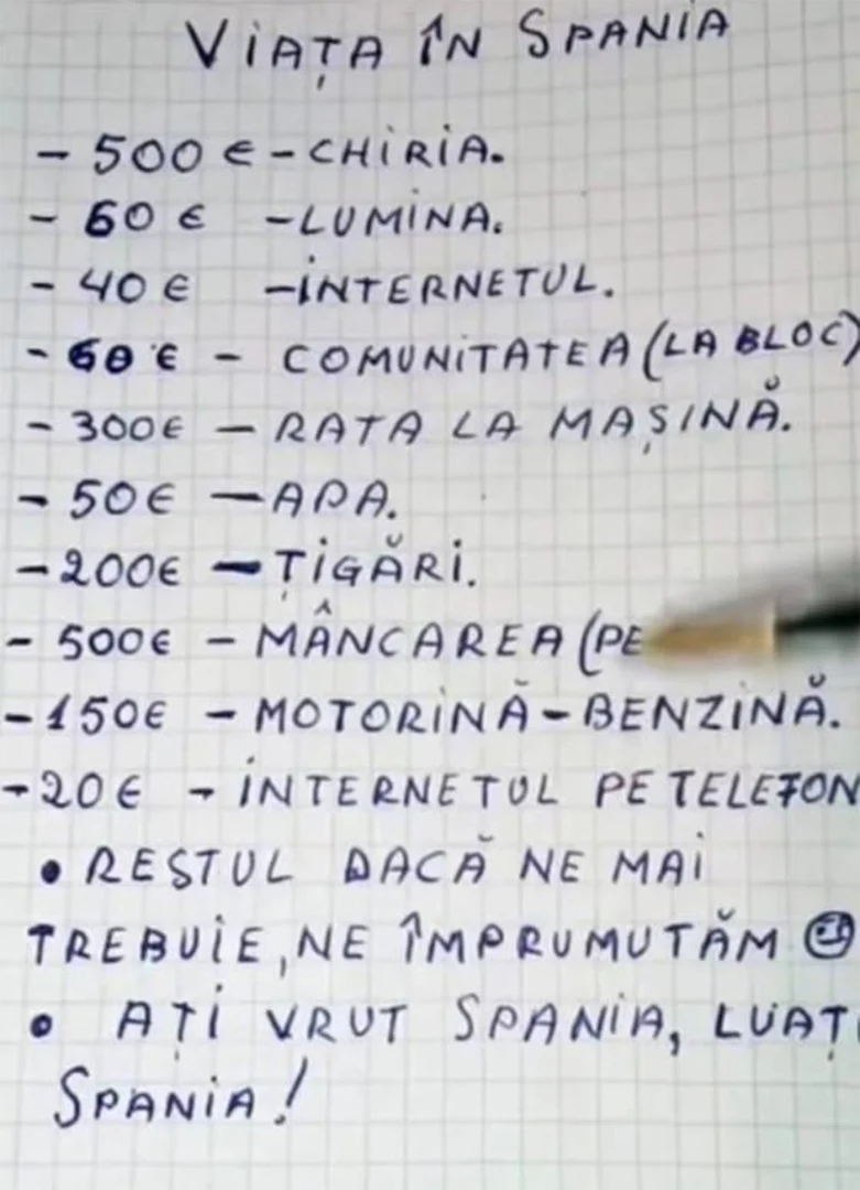 Românul a luat o foaie de hârtie, un pix și s-a apucat să calculeze cât îl costă să trăiască o lună în Spania.