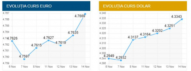 Precedentul record a fost înregistrat un curs de 25 ianuarie 2019 când BNR a anunţat un curs de 4,7648 lei/euro.