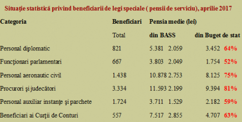 Chiar dacă nu există o analiză oficială a impactului pe care îl vor avea pensiile speciale asupra bugetului, dimensiunea catastrofei poate fi realizată doar prin prezentarea situației existente cu plata din luna aprilie 2017.