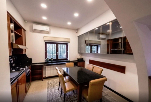 Cu o suprafață construită de 500 mp și un teren de 1.258 mp, casa din buricul Bucureștiului ridicată în 1940, are 10 camere, 4 dormitoare, 7 băi, 10 locuri de parcare și sală de sport, scrie gsp.ro.