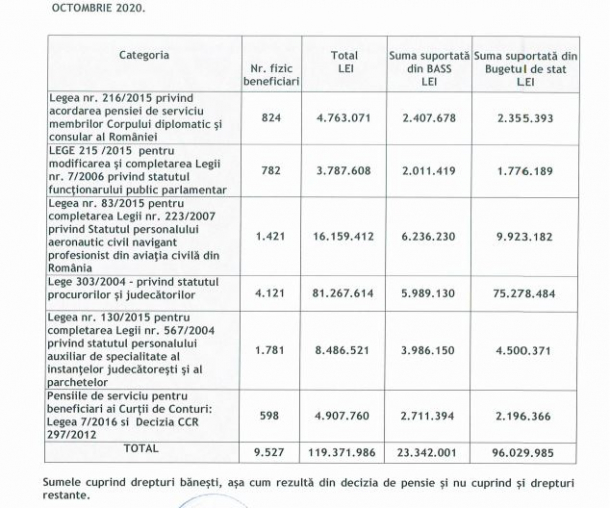 Casa Națională de Pensii a oferit un raport detaliat despre pensiile speciale, pentru luna octombrie, pentru B1.ro.