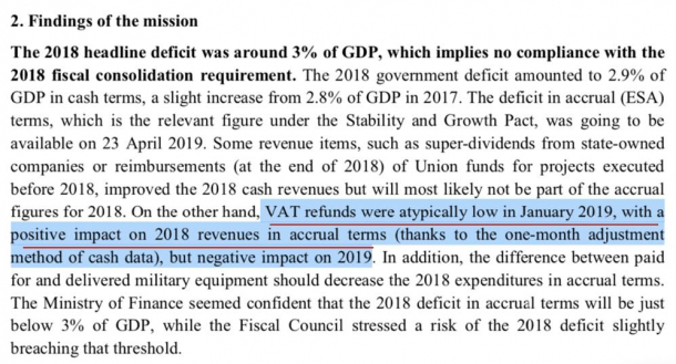 „CE (Comisia Europeană – n.r.) vine cu prima DOVADĂ că datele au fost „aranjate” în aşa fel încât deficitul, atât ESA cât şi CASH, să nu depăşească 3%.- au transferat venituri din 2019 în 2018 pentru a re reduce deficitul în bugetar în 2018″.