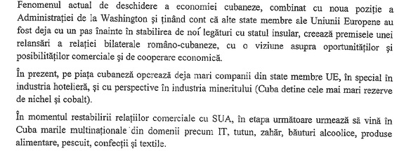 Pornind de la aceste argumente, Guvernul a redactat textul unui nou Acord economic cu administrația din Cuba, cu o valabilitate de cinci ani, dar și cu posibilitatea de reînnoire pe alte perioade de câte cinci ani. Acum urmează negocierile cu oficialii de la Havana pentru ca și aceștia să semneze documentul.