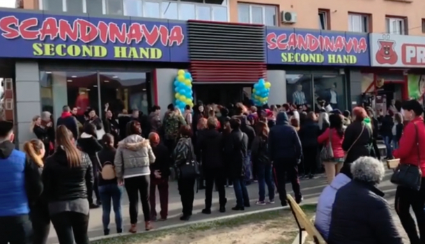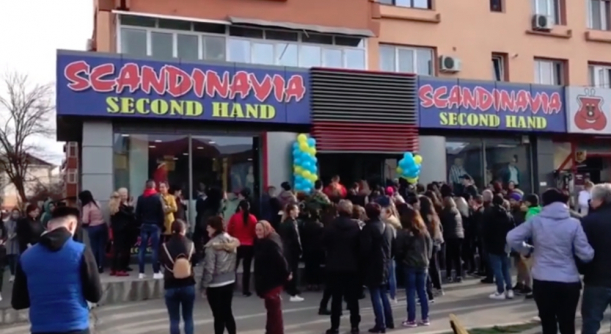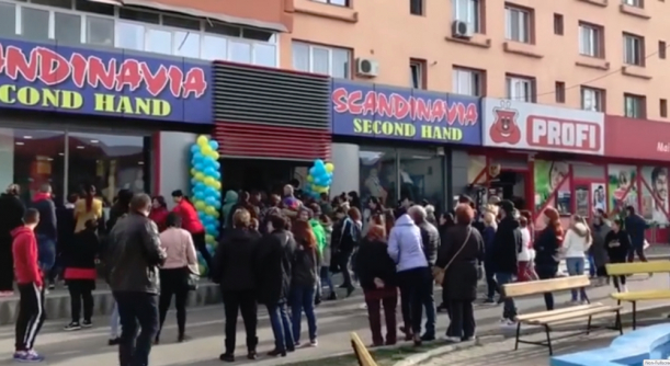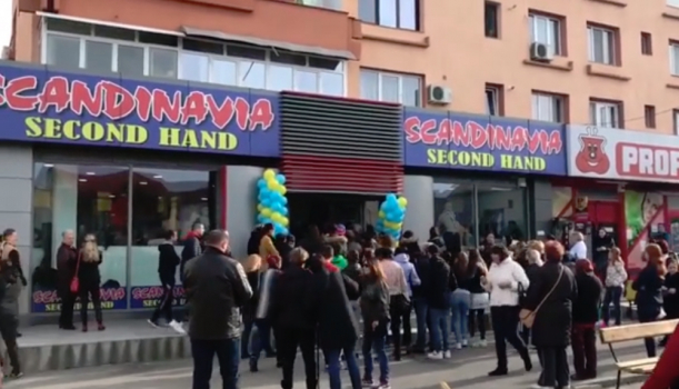 Îmbulzeală de nedescris la deschiderea unui nou magazin de haine second-hand în Târgu Jiu.