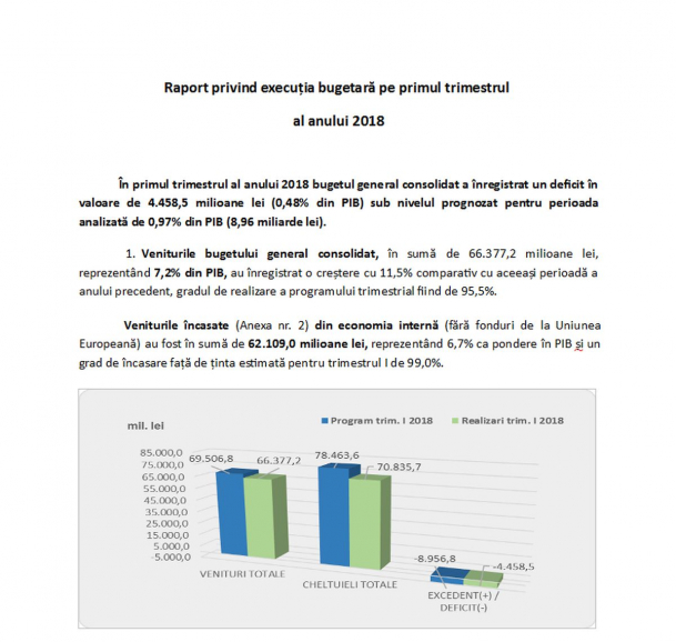 Ce arată însă raportul privind execuția bugetară pe primul trimestrul, publicat luni de Ministerul Finanțelor?