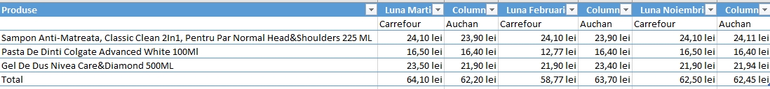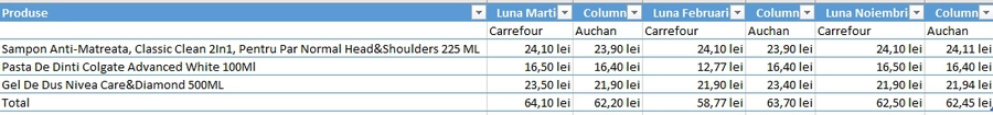 De asemenea, la Carrefour, comparând luna martie cu luna noiembrie, prețul total al coșului cu produse de igienă personală a crescut cu 1,6 lei, adică cu 2,56%.