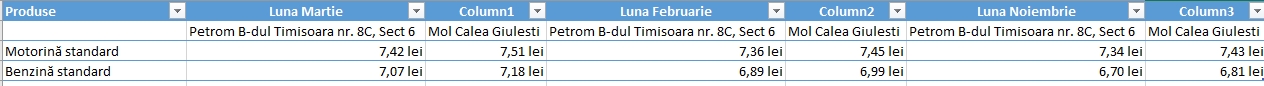 De asemenea, la Mol Calea Giulesti, a crescut în luna martie față luna noiembrie tot cu 0,08 lei, și anume 1,08%, iar benzina a crescut tot cu 0,37 lei, adică 5,43%.