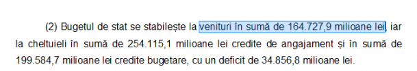 Veniturile raportate anterior – 164,7 miliarde lei