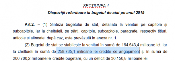 Creditele de angajament raportate sâmbătă – 258,7 miliarde lei