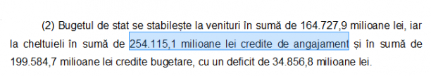 Creditele de angajament raportate anterior– 254,1 miliarde lei