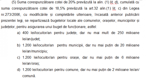Există, însă, modificări şi la modul de repartizare al bugetelor de funcționare ale comunelor, orașelor, municipiilor și județelor.