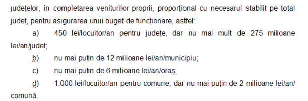 Varianta nouă – 450 lei/locuitor/an pentru județe, dar nu mai mult de 275 milioane lei/an/județ