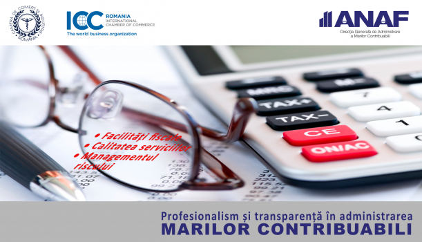 Camera de Comerţ şi Industrie a României prin Comitetul Național ICC România, în parteneriat cu Direcția Generală de Administrare a Marilor Contribuabili – ANAF, organizează, joi 29 septembrie, începând cu ora 10.00, evenimentul „Profesionalism și transparență în administrarea Marilor Contribuabili”, desfășurat la sediul CCIR Business Center.