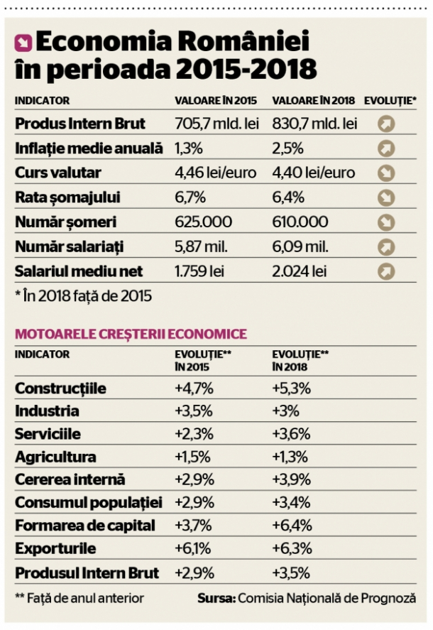 Conform Comisiei, salariul mediu net va ajunge la peste 2.000 de lei în 2018, veniturile crescând şi în sectorul bugetar, şi în cel privat. Plus că vor fi mai mulţi salariaţi (peste şase milioane în 2018 faţă de 5,8 milioane în prezent) şi mai puţini şomeri (610.000 în 2018, faţă de 630.000 în prezent).