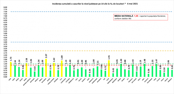 Incidența cumulată a cazurilor la nivel național, în data de 6 mai 2021 (FOTO)