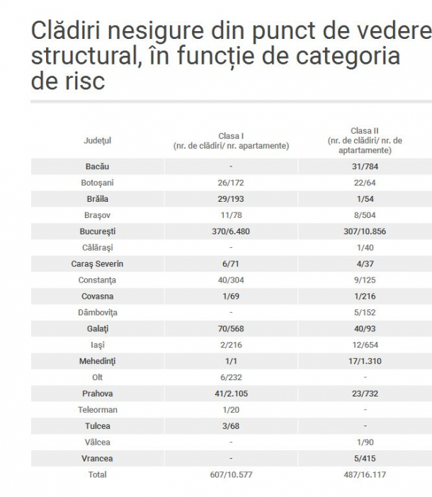 Zeci de mii de clăditi din România prezintă un risc ridicat de prăbușire la cutremur. Majoritatea sunt în București, Strategia Naţională de Locuire, un proiect de HG pus în dezbatere publică de Ministerul Dezvoltării.