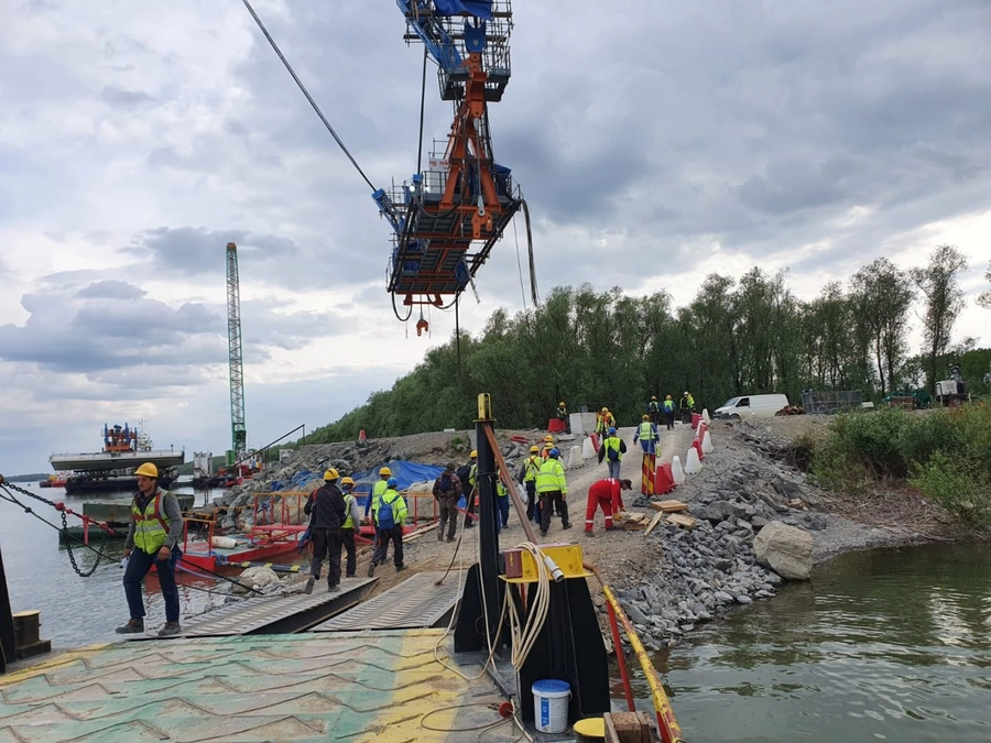 Încheiem o etapă extrem de importantă din acest proiect, după care va urma cea de sudură a tablierului. Momentan, tablierul este montat în sistem de prindere provizoiu, după care va urma partea de sudură, prevăzută să pornească la începutul lunii iulie.