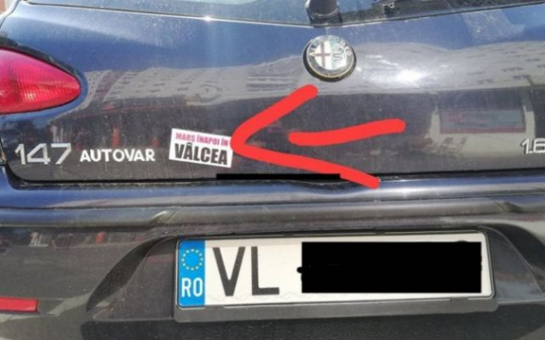 Abţibild jignitor lipit pe portbagajul unei maşini: „Marş înapoi în Vâlcea“ Ce SFĂTUIESC autoritățile (FOTO)