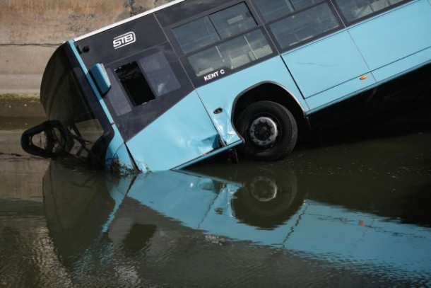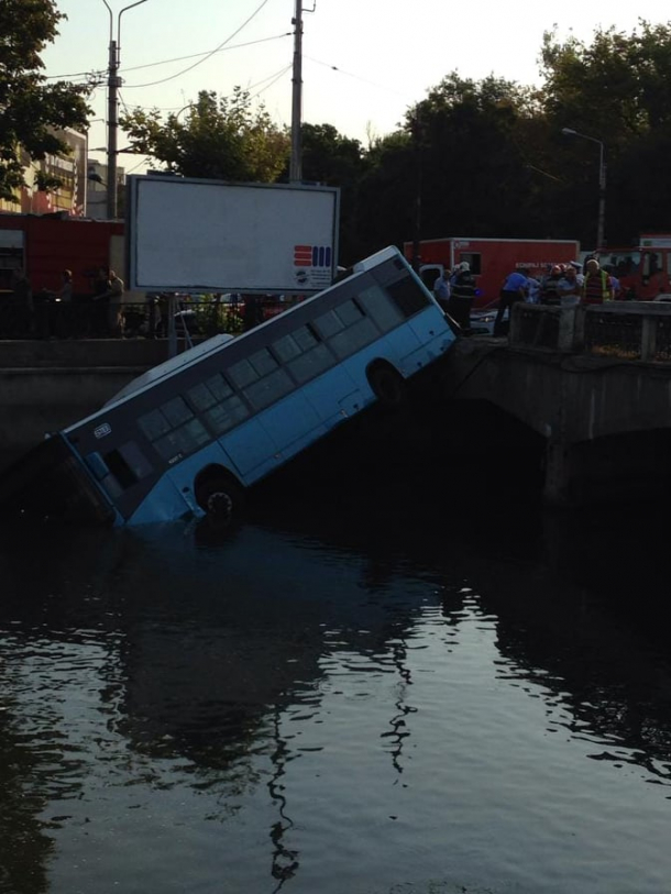 Autobuzul de pe linia 196 circula pe sensul Gara de Nord – Carol Davila în momentul în care un autoturism i-a ieșit în cale. Ca să evite impactul cu mașina care trecuse pe roșu, șoferul vehiculului STB a tras de volan și a lovit parapetul din dreptul râului Dâmbovița. Autobuzul nu a căzut complet, rămânând suspendat în albia râului. Cele două persoane care se aflau în autobuz – șoferul și o pasageră – au sărit pe geam pentru a se salva.