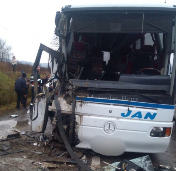 Un autobuz cu circa 50 de persoane a intrat în coliziune cu un autocamion.