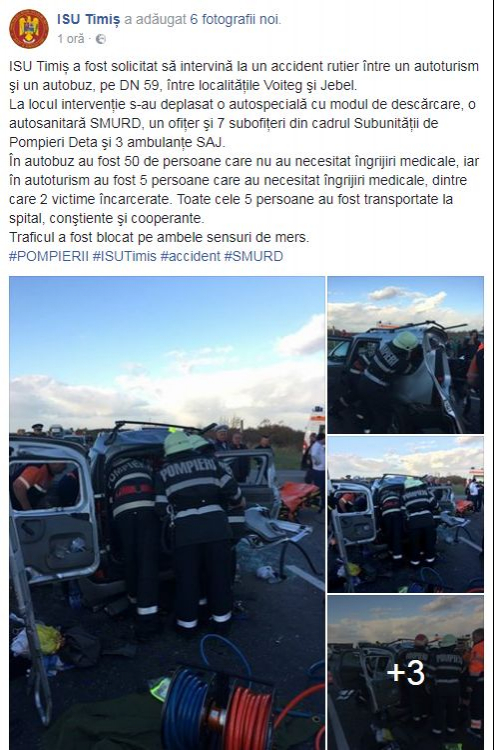 Două persoane din vehicul au fost încarcerate, acestea fiind transportate la spital împreună cu celelalte trei persoane care mai erau în mașină.