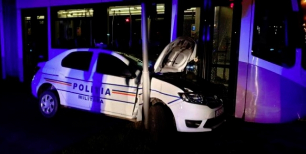 ACCIDENT INCREDIBIL: O mașină de Poliție a intrat într-un tramvai! (VIDEO, FOTO)