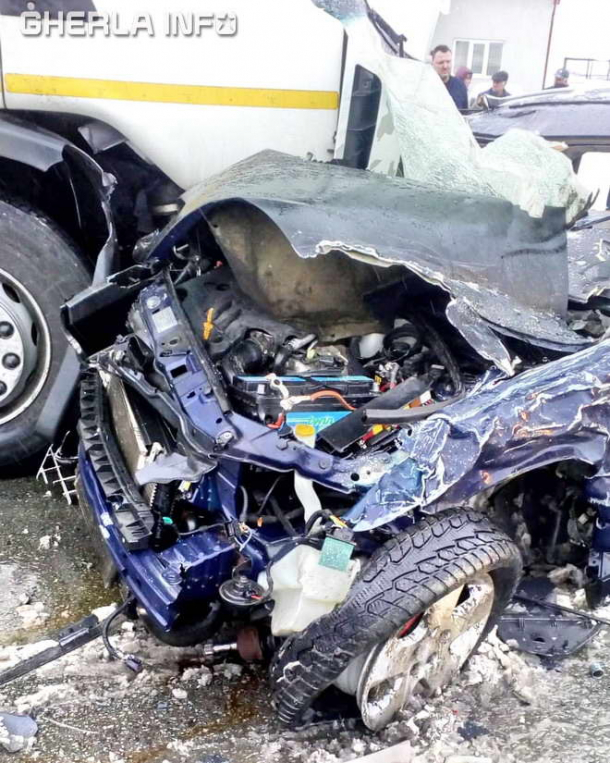 Accident TERIBIL în Maramureş: O maşină a intrat SUB UN TIR