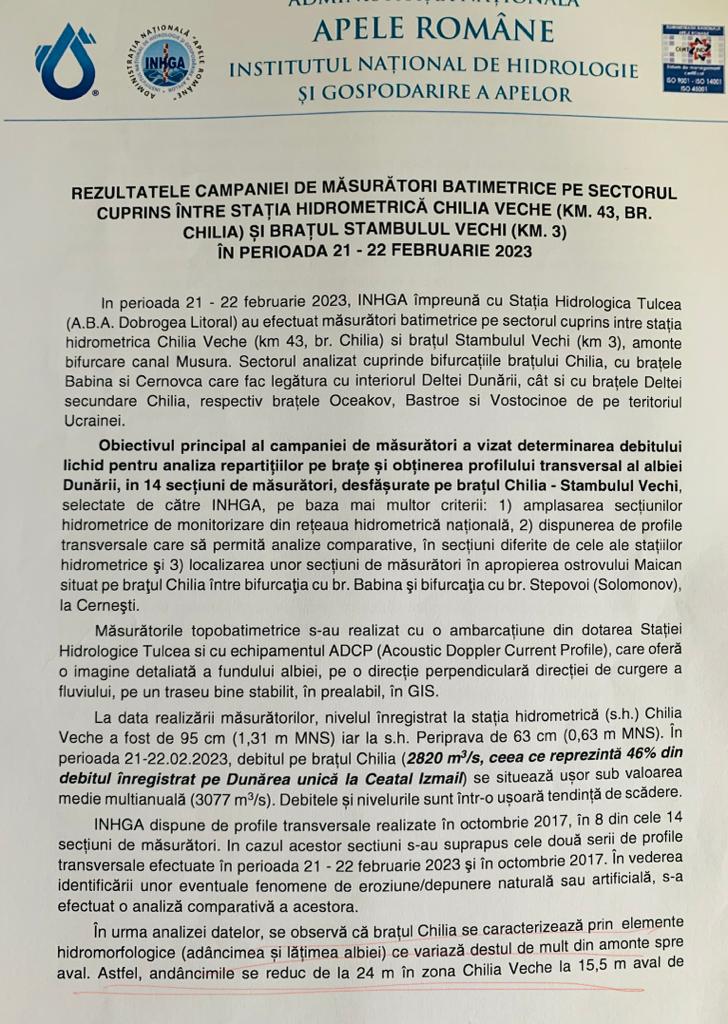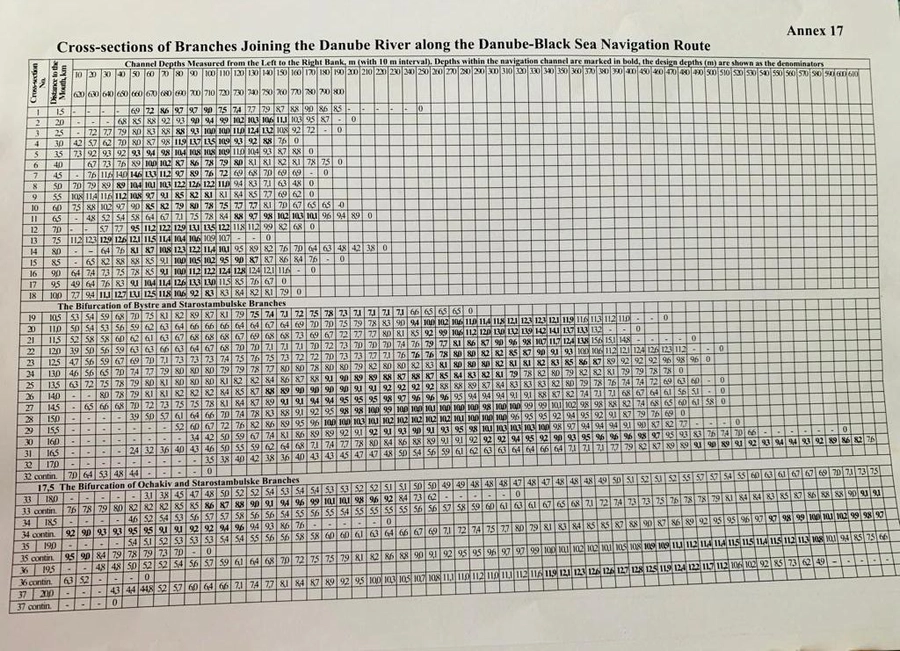 În plus, un studiu al Administrației Naționale Apele Române chiar de anul acesta vorbește despre adâncimi de peste 10 metri în mai multe zone: „Adâncimile se reduc de la 24 m în zona Chilia Veche la 15,5 m aval de ostrovul Maican. Acestea ajung la 9,3 m imediat aval de br Oceakov. Mai departe, adâncimile cresc până la 12,2 amonte de br. Bâstroe”.