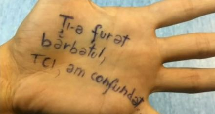 "Ti-a furat barbatul, TCI, am confundat…", este mesajul pe care îl avea scris în palmă Magdalena Șerban, când a fost reținută.