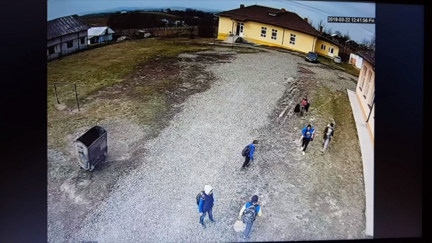 Însă, pe filmarea video se vede într-adevăr cum elevul iese alergând din școală, urmat de alți trei colegi, dar toți sunt extrem de agitați, în niciun caz nu se joacă.