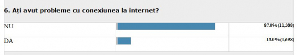 Rezultatele chetionarului arată și că în cele mai multe dintre secțiile de votare nu au apărut probleme cu conexiunea la internet, 87% (11.388 de persoane) dintre cei chestionați susținând că nu au întâmpinat dificultăți de acest fel.
