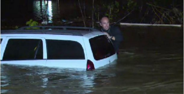 Alertă în Sinaia: O mașină în care se aflau două persoane a rămas blocată în apă (FOTO)
