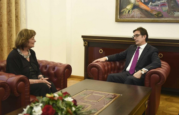Ana Blandiana a fost felicitată Stevo Pandarovski, președintele Macedoniei de Nord, pentru premiul Coroana de Aur al Festivalului de Poezie de la Struga.