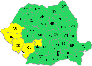 Meteorologii au emis două avertizări de tip cod galben de ploi abundente valabile pentru următoarele două zile.